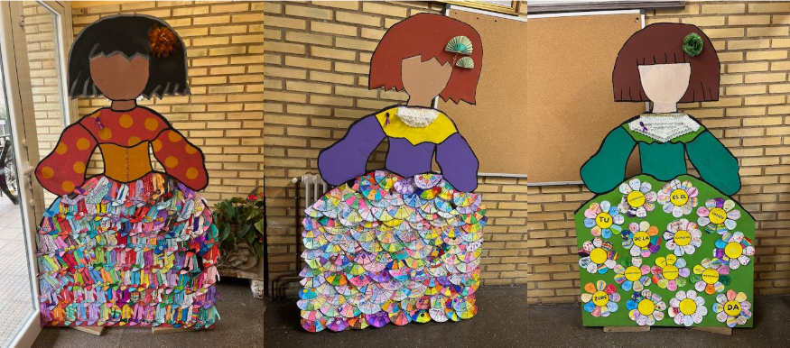 Inspirándonos en la obra maestra de Velázquez, pero dándole una visión contemporánea y feminista, los pasillos y el patio se llenaron de siluetas y representaciones de estas figuras icónicas. A través de esta actividad, los estudiantes no solo han explorado la historia del arte, sino que han utilizado los vestidos y estructuras de las Meninas para "tejer" mensajes de empoderamiento, deseos de un futuro sin brechas de género.